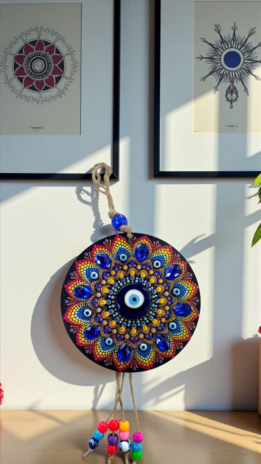 El Ojo Turco es un amuleto ancestral utilizado para proteger contra las malas energías y el mal de ojo. Este colgador móvil, disponible en diversos diseños, combina tradición y estilo moderno, convirtiéndose en un accesorio perfecto para decorar hogares, oficinas o espacios espirituales.